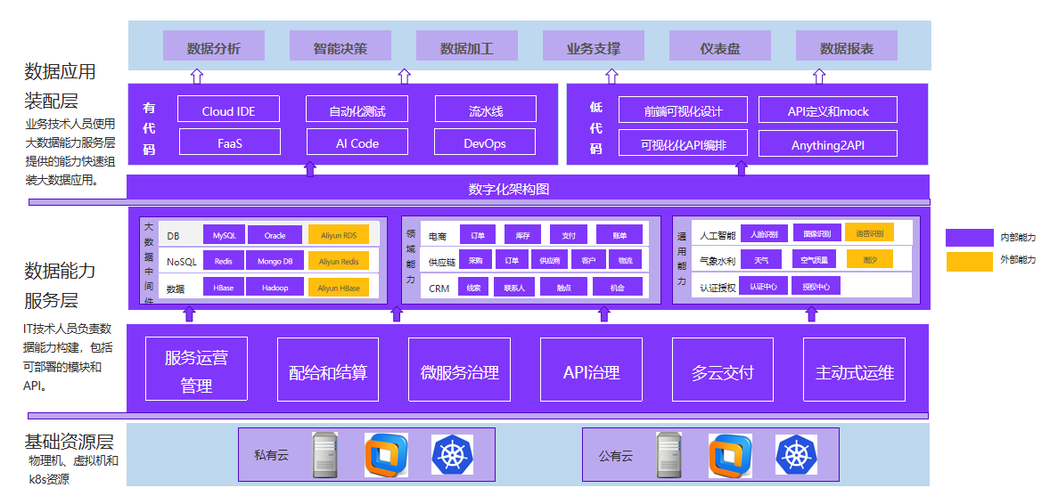 作为国内的领先云原生开发平台,开元体育创新不断探索云原生+大数据开发平台的建设之路,在基础资源层,包含物理机、虚拟机和k8s资源;数据能力服务层是IT技术人员负责数据能力构建,包括可部署的模块和API;数据应用装配层,业务技术人员使用大数据能力服务层提供的能力快速组装大数据应用。