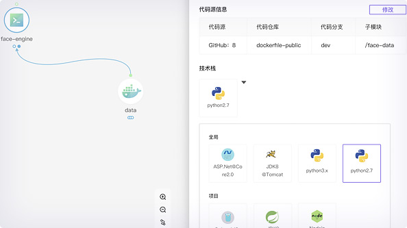 支持以应用开发为中心,对系统服务架构进行组件化设计和编排,通过拖拽的形式快速搭建应用;